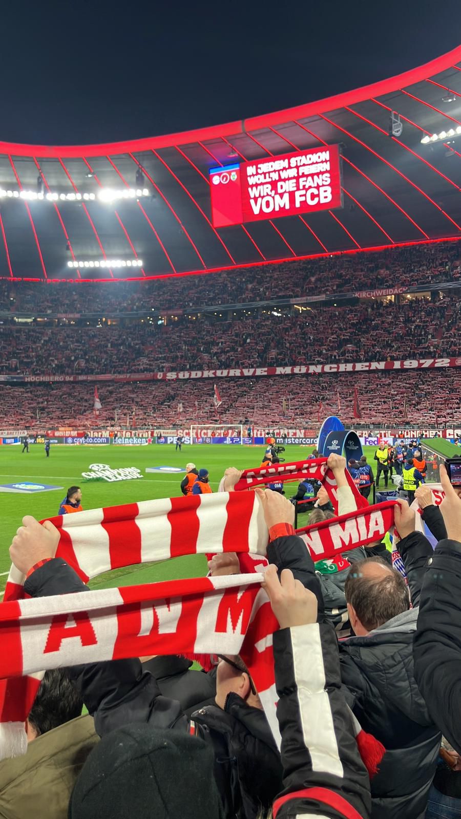Mehrere Mitglieder unseres Fanclubs waren live im Stadion und unterstützten die Mannschaft lautstark. Die Atmosphäre war beeindruckend und machte den Abend zu einem besonderen Erlebnis.